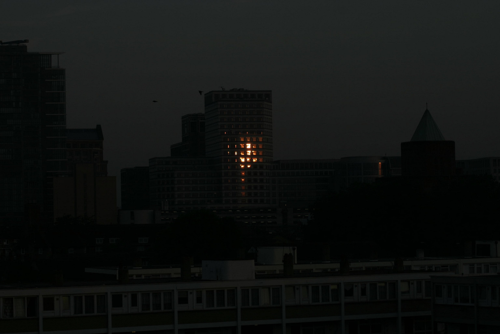 Sunset reflected off of a building on Isle of Dogs